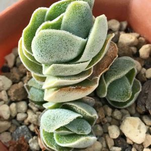 🍀アイボリーパゴタ🍀 久々登場😊♬♬ クラッスラ難しい〜よー😅💦💦 枯れかかっては復活の繰り返し…😆 神刀と玉椿の交配種だって知らなかった😘