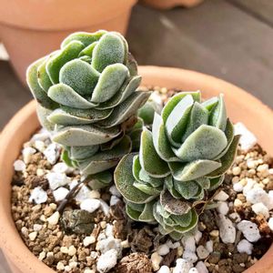 とても成長がのんびりな クラッスラ属「アイボリーパゴダ」♪ (≧∀≦) 育て方がいまいち分からず、 下葉を枯らしてしまったが、 その株元には子株がいくつか♪♪♪
