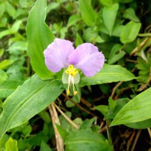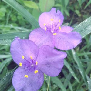 暑くなる前の朝の散歩、いつもと違う道を歩いていたら大きなツユクサ?が土手に咲いてた多分園芸種の野生化したものかな?