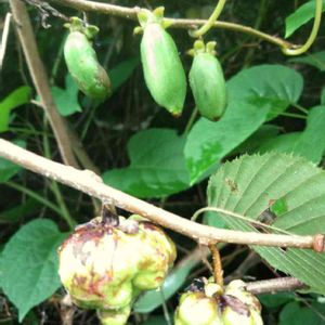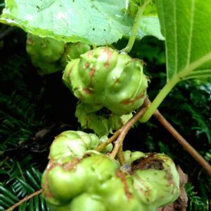 マタタビ、上は普通の実、下は虫瘤と言われる実、一緒は珍しかったのでパチリ