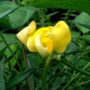 朝の散歩の途中1センチ程度のマメ科植物の花オモシロイ形なので