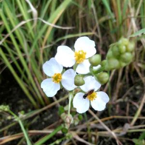 オモダカ 朝の散歩の途中 田んぼの縁で咲いてました。