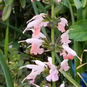 コクシネアは風になびくような細い茎に沢山の花をつける優しい感じのサルビアで、コクシネア“コーラルニンフ”はピンクの花です。 シソ科 蕚が扇のようでカッコいいです。