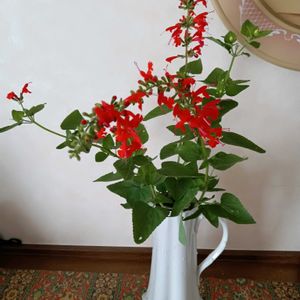 またやってしまった😱😱 野生児セロシアとガウラをチョキチョキしてたら、ベニバナサルビアをチョッキン‼️しかも今年はこの1本しか育たなかったのに…かわそうなので玄関にお迎えしました。下の方は残ってるので今後に期待です!