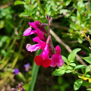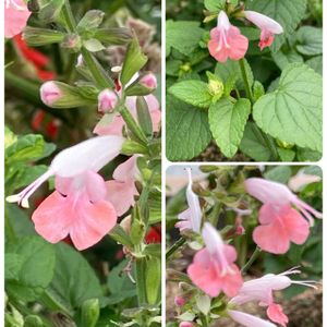 おはようございます😃 🏷️今日のお花 🍀サルビア🍀 1️⃣ サルビアは、シソ科アキギリ属 (サルビア属)の植物の総称で、 セージとも呼ばれます😊 ①サルビア・スプレンデンス (クリーム色、紫💜色赤❤️色) ②サルビア・コクシネア又は コッキネア (ベニバナ♥️サルビア) ③サルビア・ファリナセア (ブルー💙サルビア) ④左、サルビア・レウカンサ💜 (アメジストセージ又は メキシカンセージ) 右、サルビア・インボルクラータ (ローズリーフセージ) ⑤サルビア・コクシネア🤍❤️ サルビア・ネモローサ🩷 サルビア・ネモローサ (カラドン ナ💜) 今までに散歩道で出会ったのと 私の庭に咲いたのをコラージュしました🤗 🏷️土曜日は紫の花 🏷️美しき青きドヨウ 🏷️碧い軌跡 参加します。