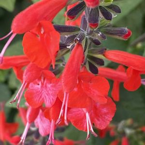 今日のお花 サルビア ❁⃘*.゚シソ科 アキギリ属(アキギリ属) ① サルビア・スプレンデンス/来路花 原産地:ブラジル ・ハーブ ・一年草扱い ・草丈:30-50cm 花期:6-11月頃 ・葉:対生し、長さ7cm 幅5cmで鋸歯がある :葉にも芳香がある ・花序:茎の先に輪状に花が密集した穂状花序 ・花径:2cm ・花冠:長さ約2.5-4.2cm 花の形:筒状で唇形 ・花色:赤(園芸品種: 紫、ピンク、白、オレンジなどがある) ・唇花につく蜜は美味←知らなかったぁ〜、機会があれば、試してみよう。 ・和名:ヒゴロモソウ(緋衣草).サルビア、サルビア・スプレンデンス 花言葉:「燃える想い」 ② ベニバナサルビア・コーラルニンフ 原産地:メキシコや北アメリカ南部から中央アメリカ ・一年草または二年草 ・草丈:30-60cm ・花期:4-6月 ・花径:約3cm ・花冠の長さ:2-2.3cm ・花冠の形状:リップ状の唇形の花 ・花弁の先に雄しべと雌しべが突き出るのが特徴 ・別名:ベニバナサルビア、トロピカルセージ、テキサスセージ 花言葉:「尊敬」「知恵」「エネルギー」「家族愛」「燃える思い」「良い家庭」「家族愛」 ※ サルビア・コクシネア(サルビア・コッキネア)系の園芸品種 ③ ベニバナサルビア/紅花撒爾韮亜 原産地:北アメリカ、中央アメリカ ・一年草或いは二年草 ・草丈:30-70cm ・花期:4-6月 ・別名:ベニバナタムラソウ、コクシネア 花言葉:「燃える思い」「エネルギー」「家族愛」「尊敬」「知恵」「思いやり」 ④ コモンセージ 原産地:地中海沿岸 ・ハーブ ・多年草または常緑低木 ・草丈:50-70cm ・花期:5-7月 ・花:唇形花 ・花径]0.5-1cm ・花:長さ約2cm ・花色:淡紫色または白色 ・葉の色が異なったり斑が入ったりする園芸品種も存在する ・別名:サルビア、セージ、ヤクヨウサルビア(薬用サルビア)、ガーデンセージ 花言葉:「幸福な家庭」 ⑤ チェリーセージ 原産地:テキサス州、メキシコ、グアテマラ ・ハーブ ・多年草 ・草丈:60-120cm ・花期:4-11月 ・花:頂生する穂状花序~総状花序に疎につき、2唇形 ・花色:涼しいときには白色と赤色の2色、暑い真夏には赤色の1色になる。ときに、両者の花が混じることもあり、白色だけになることもある ・別名:サルビア・ミクロフィラ、サルビア・グレッギー、オータムセージ、アキノベニバナサルビア、ホットリップス 花言葉:「燃ゆる思い」「知恵」「尊重」「明るい家庭」 ※ サルビア・ミクロフィラの園芸品種であるが、サルビア・ミクロフィラとアキノベニバナサルビア(チェリーセージ)とのハイブリッドとも考えられている