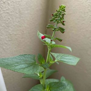 こんばんは🌆 良く聞く植えた覚えのない花「ベニバナサルビア」みたいです😲 嬉しいですけど🌺 🏷金曜日の蕾たちに参加します💠 もうすぐ開会式が始まりますね🌏