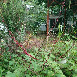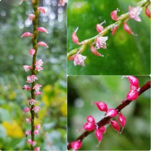 ミズヒキ、よく見ると花びらが2色! 綺麗な赤色は実に成っていました