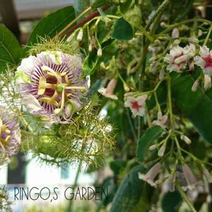 トケイソウのお花 今年初めて育ててみましたが 近くで見ると ホント面白くて可愛いです💚 コロンと実も付いてきました🎵 これから赤くなるのかな? 今年はヘクソカズラだって グリーンカーテンに仲間入り🎶(-^艸^-) お花も可愛いし そろそろ実が付いてくる頃~♪