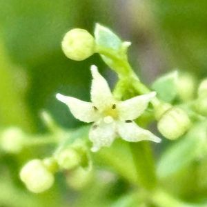 今日のお花🌿アカネ🌿茜 アカネ科アカネ属のつる性多年草 根が茜色をしていて草木染めの原料となり、古くから布を赤く染めるのに利用されてきました🟥 現在はほとんど行われていないそうです。 また薬草としても利用されるそうです。 ①花 *直径3〜4ミリ *花冠は深く5裂 *おしべ5個 *めしべの花柱2個 2024.10.2撮影 ②若い果実(液果) *直径5〜7ミリ *普通2個くっつくが、1個だけしか発達しないものもある *熟すと黒くなる 果実の先にくっついているのは虫えいです ③葉とつる *葉柄や茎には下向きのカギ状のトゲ *4個輪生している葉のうち、2個は托葉が大きく発達したもの ②③ 2024.10.31撮影