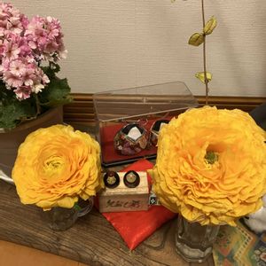 お庭のラナンキュラスを玄関に〜