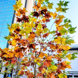 【プラタナス、紅葉、ジニア】 (番外編:ツアートラック&ワンコ) 以前アップした木が紅葉しているかと 思って行ってみると遅かった… 3picと4picは先日の月灯りの県文センター 夜とは違う紅葉とジニアが沢山見られたけど 抽選に外れたコンサートの雰囲気だけ味わって来た… 🐶の名前が「省吾」と仰る同じく抽選に外れたというご夫婦と意気投合しました😊