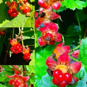 野いちごのコラージュ 最近撮った、イチゴの実のコラージュです😊 え⁈ 先日も投稿してるって⁉️😳 そうだったかなぁ🤔 …どうも年を喰うと物忘れがひどくて👴💦😂 左上より、時計回りに:ナワシロイチゴ、クマイチゴ、クロイチゴ、モミジイチゴ、ヘビイチゴ、ニガイチゴ