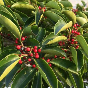 近所の植え込みに植えてあるザクロ 樹高1m少し超える程度で実も小さいです 観賞用で食べられないらしい〜😅