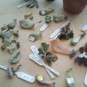 【日記】 『葉挿し( 'ω'o[Now]o』 たっちん様✨の『底面吸水』で葉挿し( 'ω'o[Now]o♡ 8月末から1ヶ月、ブロンズ姫さんで1人特訓してました(。+・`ω・´)キリッ そして9月末。 メルカリ&ラクマ経由で葉っぱさんを合計49枚(被り有)強気でお迎え(。+・`ω・´)キリッ 途中『あ、無理・・・(゚∀゚;)ヤベッ!』となるも、たっちん様✨の降臨→救助&手ほどき♡頂きまして、初心者にも関わらず・・・ 発芽発根、成功79.6%CLEAR! ヽ(・∀・)ノ♡ ・・・(・ω・) エケさん&グラベリさんが、1つの葉挿しさんから数株発芽する事を知りませんでした。 (練習で体験してない状況・・・) 来年、ちょっと怖いです( ・∇・)HAHAHA