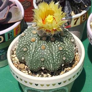 アストロフィツム属 兜。💛 みなさんの投稿を参考に作ってみたリメ鉢です。✌百均の材料、使えますね。 今日は久しぶりに映画鑑賞の予定。😁✨