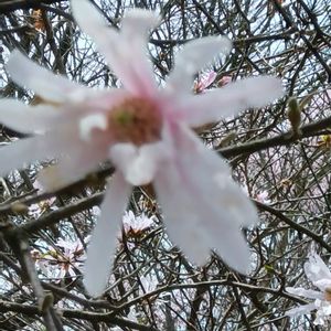 コブシに似た花ですが 花弁が細い🎶 葉が展開する前に 直径7~10cmの大きな花 四手辛夷(しでこぶし) 別名 姫コブシ モクレン科