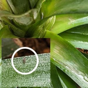 パイナップルの葉の付け根が次々と傷んでいくんだけど、この這ってる虫が原因?なんだろうこいつ アザミウマ?