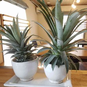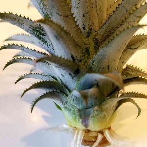 年末年始2週間も家を空けてたせいかなー パイナップル🍍の葉が凄い傷んでる 寒かった?乾きすぎ?逆に帰宅後に水をあげすぎた? 付け根から切ってみたら意外と瑞々しかったけど、まだ元気な葉に栄養回ってくれたほうがいいね