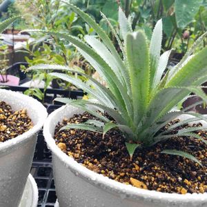 台湾パイナップルのクラウン栽培です。 猫のみみちゃんに齧られながらも成長しています。 葉っぱが長くなって来たので植え替えました。 前はダイソーで2つ重なって110円と言う1番小さな鉢に植えていましたが一回り大きい鉢(1個110円ですが笑)にしてみました。 前に買ったブルーベリーの土が残っていたので、それを足して植えました♪😆 子供に『みみちゃんがパイナップル齧るんだよ😭』と言ったらササッとスマホでパイナップル 猫で調べてくれて『パイナップルは猫は大好きって書いてあるよ?!』と言われました(笑) マジカー!!! パイナップル危うし(笑) でもちょっとくらい齧られても枯れないし、猫にも飲み込まなければ毒ではないと知ってちょっと安心しました🤣