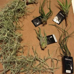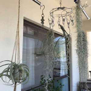 久しぶりにエアープランツたち。 寄せ集めて写真を撮ってみました! カゴに入っている葉っぱがスイスイしているのは、イオナンタでしょうか? 分かる方、いらっしゃいましたら教えてくださいませ。