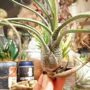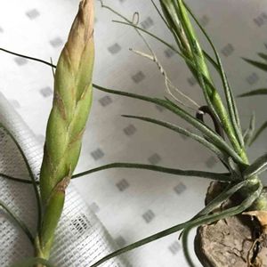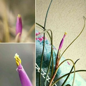 季節外れの暖かさにだまされた? エアプラちゃんの蕾からニョキッと紫の花芽が出ていました💗😆💗 不知火さんにこの子のお名前教えていただきました♪ ブッチーだそうです! 根元がブチ模様だから、というわけではない…かな(笑)。 ブッツィーとも言うのかな?お水が好きな種類とのことで、そういわれてみれば他のエアプランツよりソーキンするとものすごく生き生きするので、納得です⭐