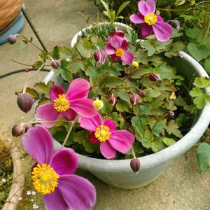 鉢植えの秋明菊咲きましたd(⌒ー⌒)!秋ですねー🙌🌺