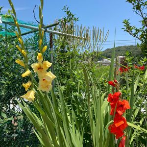 畑では暑苦しいほどオリエンタルリリーが満開です😁 右の2つは同じものを撮ったのではありません😁 日々草(夏花火)の花はふつうの1/5位の可愛さです😍 どちらも冬越し組で暑い中頑張って咲いてくれます👏