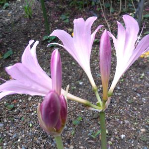 おはようございます😊 雨が降って ぴゅ〜んと出て 咲いていた ナツズイセン🩷