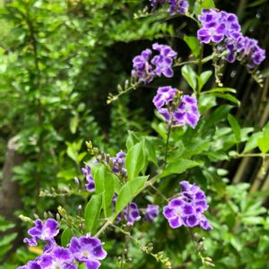 裏庭でデュランタさんが咲き始めています💜🌿 春から低木のお花が順番に咲いてくれるのが嬉しいです´ ³`°) ♬︎*.:*