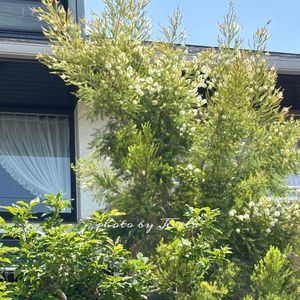 昨日まで蕾だったオージープランツのティーツリーに白い花が咲きました