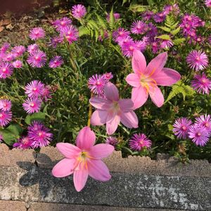 マツバギクはもう終わっていますが、ピンクの大きい花(名前がわかりません)は次々と咲いています。どんよりした天気の時には、この花をみると明るくなりますね。^_^😁
