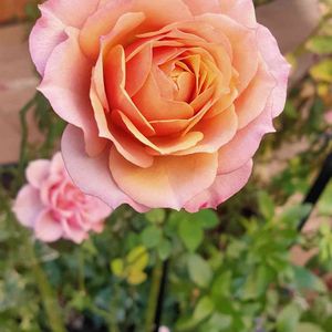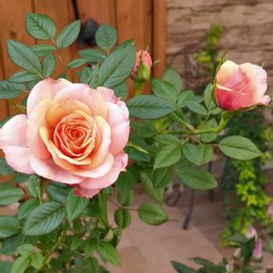 これ、昨日あげたミニバラと同じ、タマラコルダナちゃんなんです ❔❔❔ まるで別人❗️ それも同時期に上がってきた3つのつぼみなんです。 先に咲いた2つは昨日のようなカップ咲き。 これは、THEバラ🌹というような剣弁咲きぽい。 しかもあわーいアプリコット色。 バラって本当にふしぎ❗️❗️