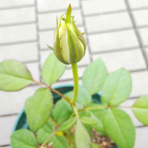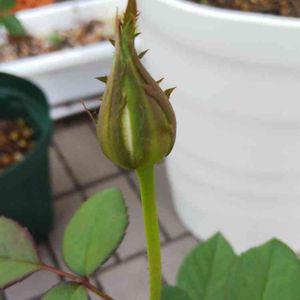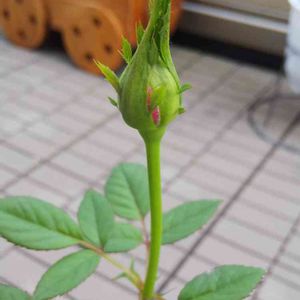 ミニバラ コルダナシリーズ 植え替えてから初の蕾が、大きくなってきて隙間から白が見えてます☺️ もうすぐ咲くかな🎵