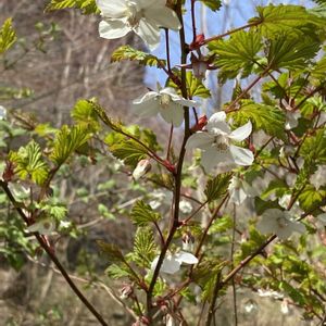 丘陵地の樹木 芽吹きが美しい💚 1️⃣ゴンズイの新芽 元気な新芽、かわいい💚 2️⃣コナラの新芽 微妙なグラデーションが美しい💚 実物はさらにキレイ 3️⃣クサイチゴのお花 今頃 盛んに咲いています。 他にも色々新芽が出て キレイでした。