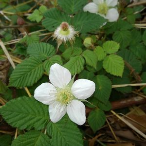 朽ち木の元で咲く クサイチゴ🌱🌱 バラ科 キイチゴ属 白い🤍 清楚なお花 ウルウルする〜