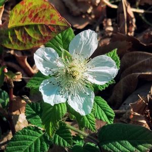 クサイチゴ(草苺) バラ科 キイチゴ属 落葉小低木と図鑑には記されていますが、こちらでは常緑 生育場所 日当たりの良い山野など 花期 3〜5月. 果実は5〜6月で、直径1cmくらい 1️⃣花 直径約4cm 2️⃣蕾 3️⃣蕾 花の開く前 4️⃣花弁の落ちた後 5️⃣葉 冬の間も葉があり紅葉 大きくて白い野生の苺の花が野山でとても存在感があります 苺🍓も大きく美味しいです