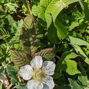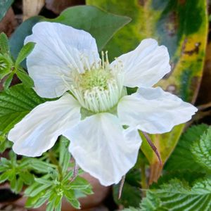おはようございます。 君は誰だね❓騒動から一夜明けて、今日は山猿娘🐒が住むマンションの駐車場で見つけた花投稿します。 真っ白の花が目に飛び込んで来ました。Googleレンズで調べると草苺(クサイチゴ)と出てきました。 昨晩は、君は誰だね❓でお騒がせしました。武蔵鐙(ムサシアブミ)だと思います。ありがとうございました🙇♂️