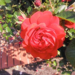 おはようございます😊 咲きましたよ カップル咲き💕 🌺ちゃん✨ 赤色🌺 黒色のレンガ のバック なんか いいな~😊 ベランダ📷 今朝 朝五時過ぎの朝日🌅 SF映画 お空みたいな 朝の光でした✨ 金曜日 ファイト~☺