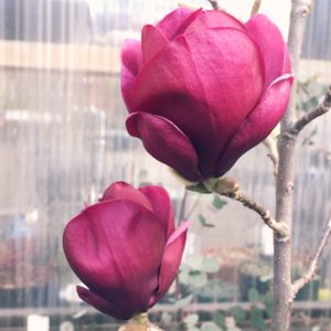 深紅の木蓮の蕾 寒さを耐えて、春の暖かさに窮屈な服を脱ごうとしているみたい❣️