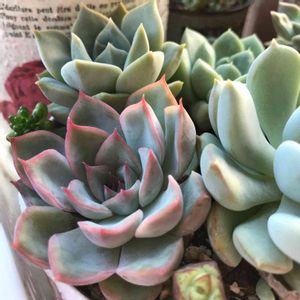 アイスクリーム🍨 夏っぽいね💕 秋にチョンパ✂️した子❤️ 左下が 頭がなくなって出てきた子💚 右下はその葉挿しっ子🧡 葉挿しっ子は5株くらい成長中٩(• • )۶ いっぱい増えてくれて嬉しい😊