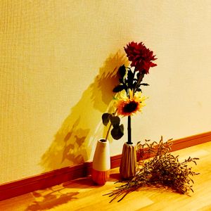 ダリアとひまわり ドライにしたかすみ草 花瓶がへなちょこすぎて 壁に寄りかからんと倒れる😢 花も好きだけど影もすき 間接照明に写る薄いカーテンが ゆらゆらゆられるのを見ながら 寝むりにつくのが好き🌙