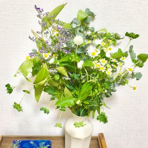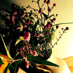 秩父の直売所で 買ってもらったお花 200円 葉っぱには虫に食われた跡があったり 花びらには土がついていたりで 花屋にはないワイルド感がなんかいい! 花の名前は ちょっとよくわかんないや🌸