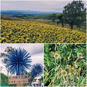 阿蘇のヒゴタイ公園🍀 ヒゴタイとは、環境庁の絶滅危惧IB類に指定されているキク目キク科ヒゴタイ属の多年草です。 8~9月、日当たりの良い山野に、小さな瑠璃色の頭花が多数集まり球状の花を咲かせます。 ...Google調べ😅 ↘️残念ながら遅かったみたい😢 マリーゴールドは満開でした😊💕