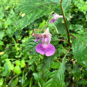 ハガクレツリフネソウ。 葉に隠れるように花をつけるので、そう呼ばれるようになった、らしい。 この時期、ヒゴタイ公園の山中に沢山咲いてました✨