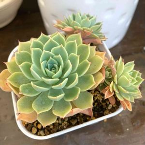多肉地植え花壇作りを夢見て夏にお迎えした養老さん。花壇作りは無期限頓挫中🤣 お迎えした時は大きめでビローンと長い葉だったのが、可愛い形にはなったけど、かなり小さくなりました🤣 しっかし子吹きますねー👶 月曜日にワクチン3回目の接種を職場で受けました。1回目2回目、どちらもなんの副反応もなくピンピンしてた私ですが、3回目は、打った翌日の夕方から発熱、背中の筋肉痛、悪寒が出てきました。そのままほっかほかのベッドで寝て、汗かいて起きたらもう気分爽快✨ 同僚もそのパターンの人が多くて、みんなハイテンションでヤバかったです🤣 連日緊張感のある日々を過ごしていますが、制約の多い生活の中にも楽しみを見出しながら過ごしていきたいと思います✨GSの皆さんのpicも、楽しみと癒しの時間です〜🤤