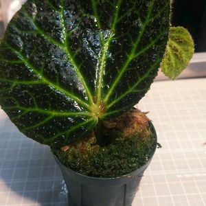 ベゴニア ホワイトアイス 常湿で育てていた株をコケリウムに植えたところ、葉が大き過ぎたため思い切って剪定。 その後、スペースに合ったサイズの葉が出てきてくれた。 ありがたい。 新芽がピンク色に白の水玉模様でとても可愛らしい。
