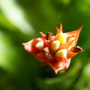 エクメアの葉っぱがなんか赤くなってきて枯れかけてるのかなって思ってたら花が?🌸 こんな感じで色づいて花が出るのか🤔 子株はまだ出てこない🤔