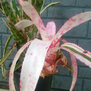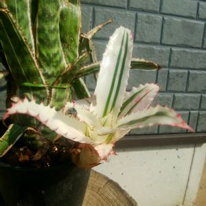おはようございます! 少し曇りがちです! エクメア:オーランディアナ エンサイン バリエガータ 屋外でも、日焼けせず頑張ってます! 見た目によらず赤いノコギリのような刺が、凶暴ですよ!