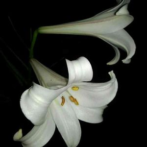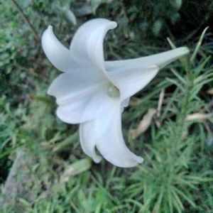 この子は赤い筋もないので鉄砲ユリかな😃💕真っ白できれいです✨玄関に二種類のユリが咲くなんて驚きました🍀何処からか飛んできました😃💗💗